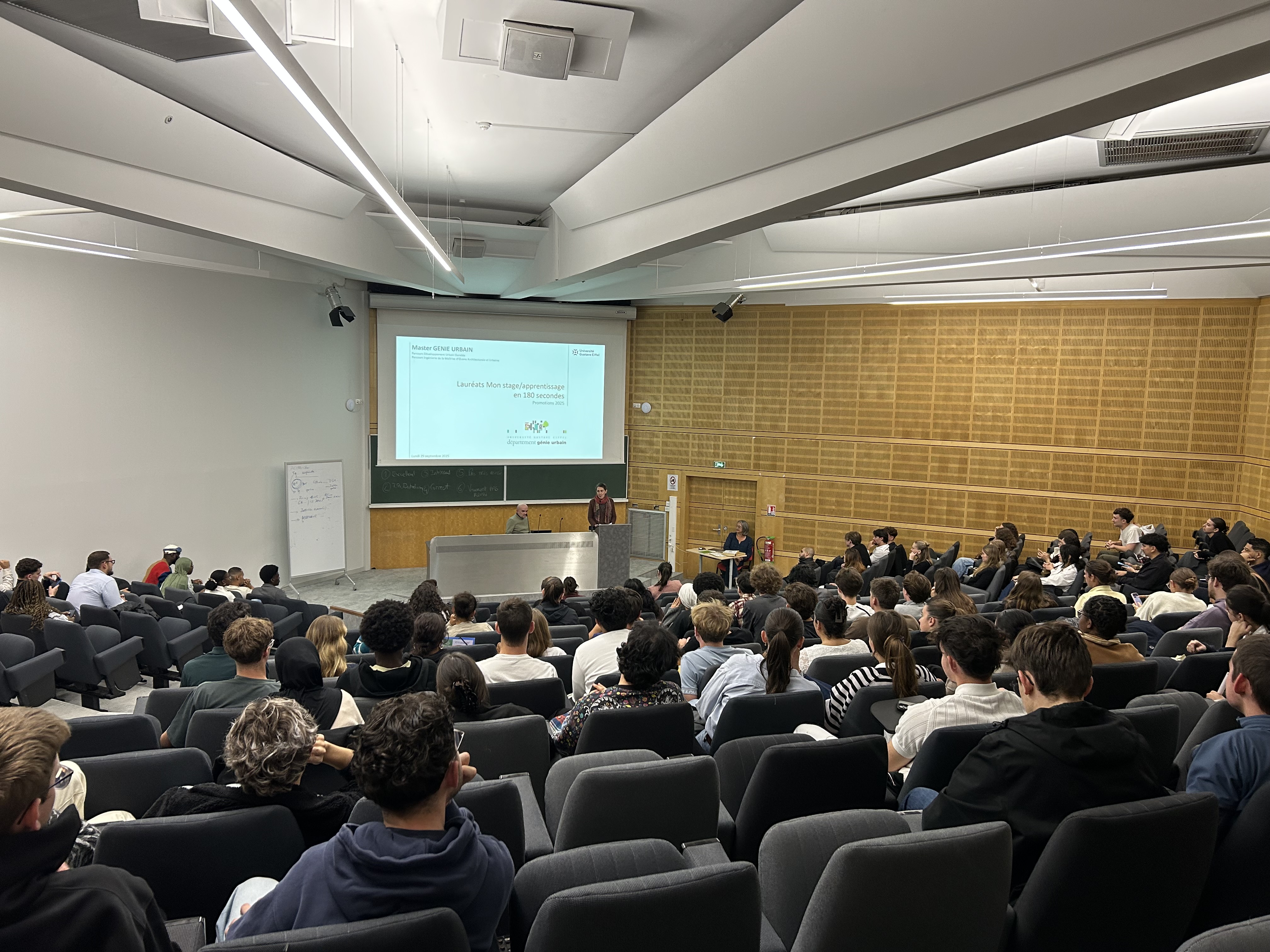 Ces présentations ont lieu devant l’équipe du Département Génie Urbain ainsi que les étudiant·es de Licence et Masters. Trois prix sont décernés : deux attribués par un vote du public et un prix spécial remis par l’équipe du Département Génie Urbain.